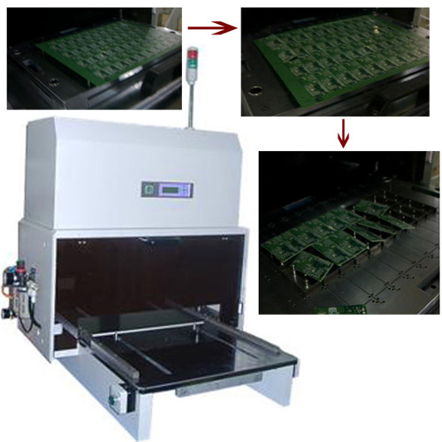 沖壓式自動分板機(jī)沖切原理:把分板沖模安裝在沖壓式自動分板機(jī)上,把要分切的FPC,PCB板放于下模對應(yīng)位置,按啟動開關(guān)可進(jìn)行一次性分板,工作中下模采用自動推拉,減輕勞動強(qiáng)度,更提高安全度,同時(shí)取放成品十分方便。