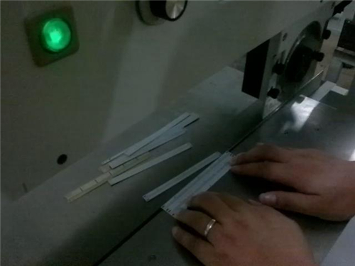 4,上刀片高度調(diào)整:根據(jù)所要分的PCB板的厚度不同對(duì)其上刀高度進(jìn)行調(diào)節(jié),直到調(diào)整至最佳結(jié)果,在下刀上放置一厚度為0.1MM的紙張,撥動(dòng)上刀座滑動(dòng)時(shí),紙上有清晰平直均勻的劃痕為最佳;電路板沿導(dǎo)板送入機(jī)器內(nèi),能否干凈利落的被刀片分開(kāi),取決于上刀片和下刀片的間距是否合適來(lái)決定的,所以分板前要將刀片高度調(diào)好,試切完畢后沒(méi)有問(wèn)題后,擰緊調(diào)整旋鈕固定螺絲.用雙手將待分PCB的V-CUT槽卡在上刀行程之內(nèi)的下刀刀刃上(不可歪斜),用腳踩腳踏開(kāi)關(guān)進(jìn)行分板作業(yè)。