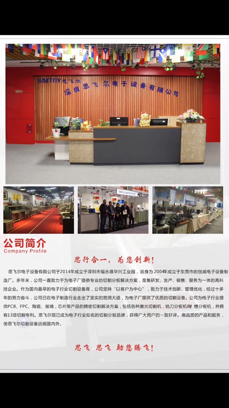 深圳思飛爾電子設(shè)備有限公司是一家專業(yè)致力于自動化設(shè)備開發(fā)、生產(chǎn)、銷售于一體的公司,具有多年開發(fā)、生產(chǎn)經(jīng)驗和雄厚的技術(shù)力量及生產(chǎn)能力。擁有長期致力于自動化控制及編程的技術(shù)人員和銷售團隊,開發(fā)有各種自主品牌自動化設(shè)備項目。自主品牌設(shè)備有激光切割機,FPC激光分板機,PCB激光切割機,陶瓷激光切割機,等設(shè)備。功能齊全,性價比高,幫助電子廠又好又快制造產(chǎn)品歡迎垂詢、洽談。
